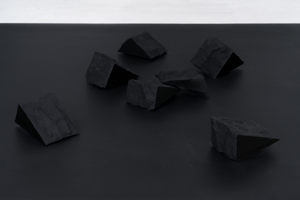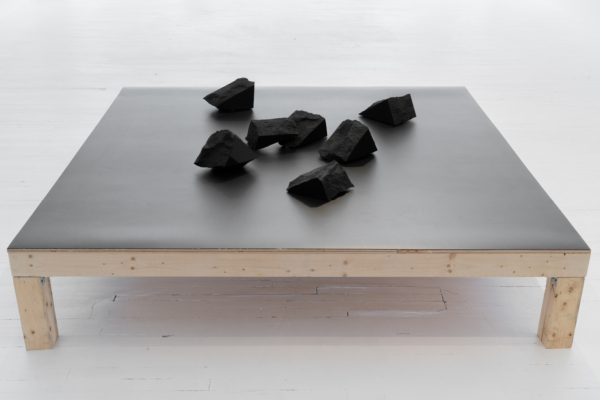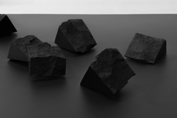 Architecture et territoire trouvent aussi chez Annie Charland-Thibodeau des pistes de réflexion fécondes. L’exploration d’anciennes carrières et. la collecte de fragments de granit issus de monuments détruits par l’homme sont le point de départ de sa démarche artistique. Dans la série Les étendues, l’artiste évoque un processus de transformation de la pierre, tantôt laissée à l’état brut, tantôt polie par l’artiste. Ce lien entre nature et artifice, mais aussi entre passé et présent, appelle un acte mémoriel. Mélange de poésie et d’intuition, ces « faux vestiges »2 sont de nouveaux bâtis qui apportent une réflexion sur le territoire, à la fois matériel et immatériel. De plus, l’artiste porte un regard sur l’espace et la mise en espace grâce à un travail in situ. C’est ainsi que « des échos se tissent en aller-retour entre les spécificités du lieu d’accueil et les ajouts construits pour l’installation »3. En collectant la matière brute, en l’altérant puis en la restaurant dans un nouveau lieu, elle nous entraine dans une narration équivoque et chargée de mystères.