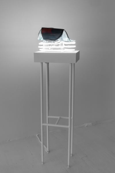 ANDRÉE-ANNE CARRIER explore les notions de familiarité, de perception et de réalité matérielle à travers la dérive formelle d’objets. Sa pratique artistique devient un espace de recherche pour interroger. notre rapport sensoriel aux objets issus de la culture de masse dont le cœur est évidé, des objets-parois ou contenants (gonflables, emballages, bibelots en céramique et vases kitchs, etc.). Carrier aborde l’espace comme lieu de relations et de tensions entre la forme, la contre-forme, la surface, le plein et le vide. Les relations spatiales explorées dirigent les rapports entre les choses comme contenants ou contenus. Dans son approche de la sculpture, Carrier semble prendre plaisir à perturber l’intégrité matérielle des choses, comme si le fait d’éprouver la substance d’un objet permettrait de comprendre sa réalité et d’en révéler d’autres dimensions.