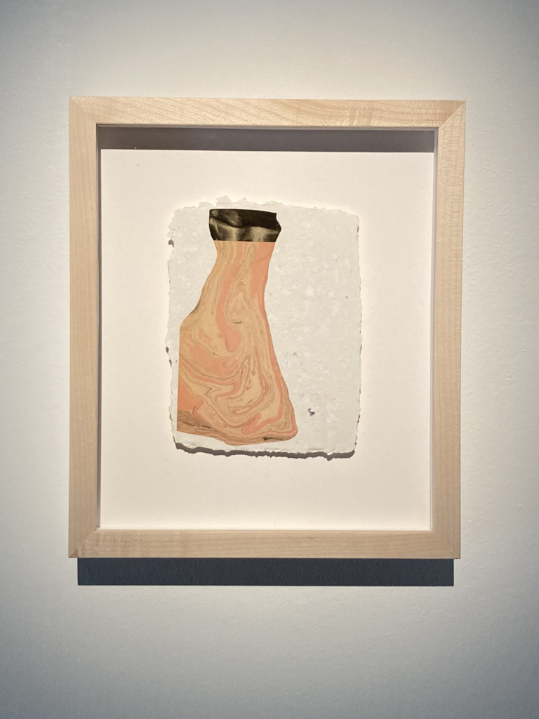 Collage (suminagashi et images trouvées) sur papier recyclé fait à la main