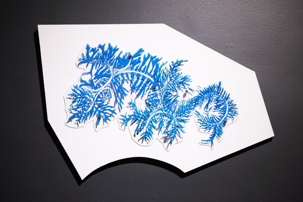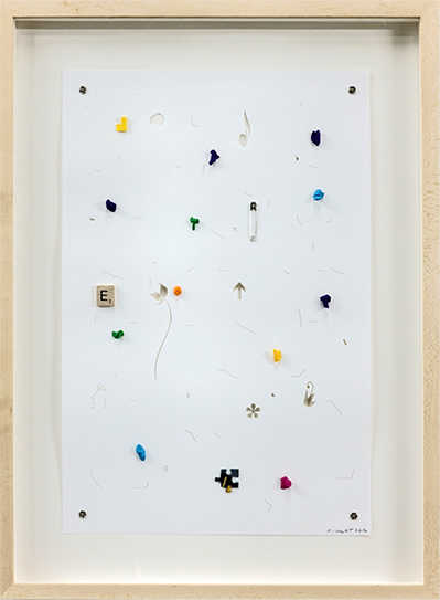 Contreplaqué, papier aquarelle, plexiglas, peinture émail,