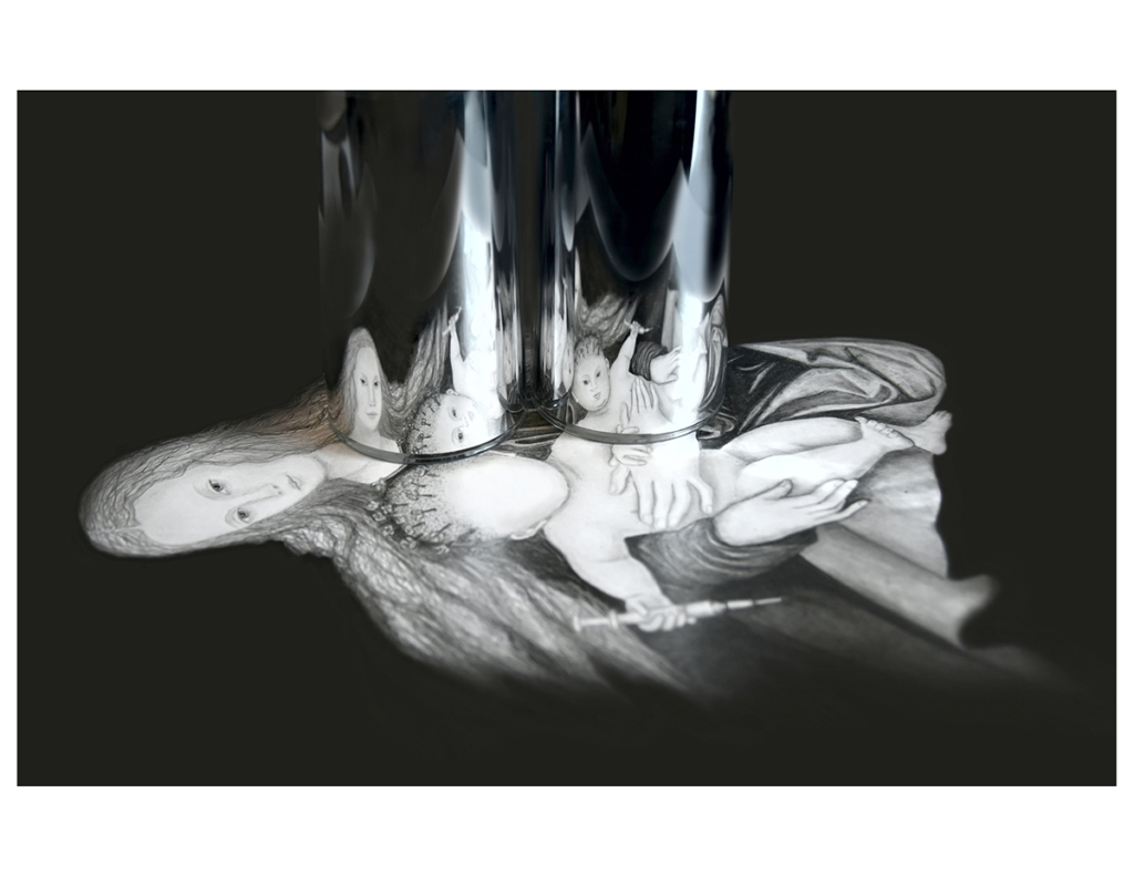 Acrylique, aquarelle, encre, pastel, marqueur, fusain et graphite sur papier aquarelle japonais