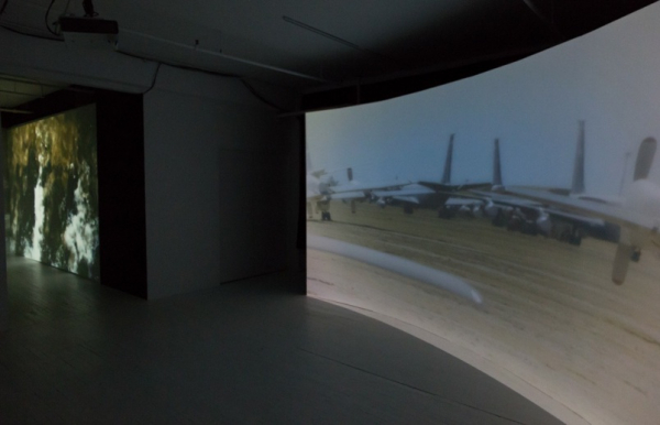 Claustrophobie des grands espaces présente dans les deux espaces du CIRCA des univers naturels dont l’occupation ou l’enregistrement témoigne d’une intervention humaine. Les espaces partagent une même bande sonore de même qu’une certaine complémentarité formelle de manière à marquer la frontière strictement conceptuelle entre leur réception émotive. Ils manifestent ainsi la pureté brute de la nature de même que sa dissolution dans le mécanique magnifié par la vitesse de défilement des images.