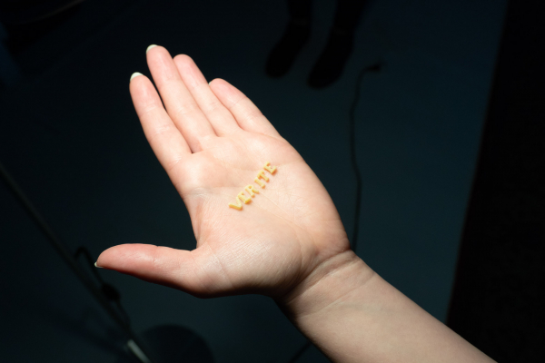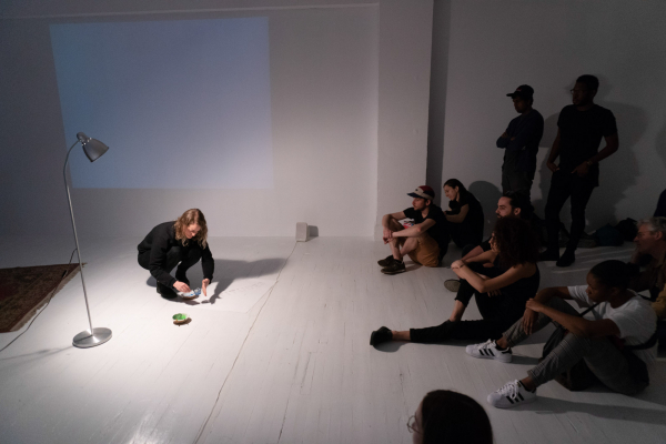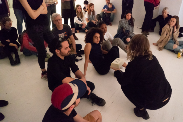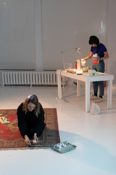 La performance Coquilles (vides) s’inscrit dans le cadre d’un projet à long-terme que l’artiste Marie-Andrée Pellerin développe autour de l’art de persuader (rhétorique) et la puissance des mots. L’artiste porte davantage attention à la performativité et à la matérialité du langage (contenant), plutôt qu’au sens rationnel des mots et à l’argumentation (contenu).