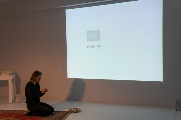 Par une combinaison d’actions performatives et de fragments audiovisuels divers, la lecture-performance Coquilles (vides) tentera de rendre visible certaines techniques de rhétorique et les formes de pouvoir que le langage incarne par sa nature même. La performance s’articule principalement autour d’un discours de Margaret Thatcher datant de 1990 qui a été manipulé, déconstruit et restructuré pour l’occasion.