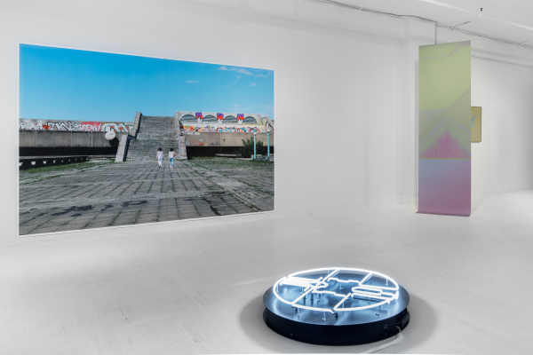 La scénographie élaborée pour la salle d’exposition du CIRCA art actuel unit des éléments tridimensionnels, des images imprimées, avec une œuvre vidéographique et sonore centrale. L’installation consiste à réfléchir sur l’avenir du patrimoine matériel soviétique et, en filigrane, sur sa portée dans l’actualité sociale. Ces formes gigantesques en béton illustrent la grandeur du régime, signe du pouvoir et de la puissance de l’Empire soviétique. Tandis que certaines photographies de vues aériennes offrent des images semi-abstraites en teintes dégradées, la vidéo documente des scènes de la vie de tous les jours autour des sites, accompagnée d’une musique ambiante composée à partir de sons de synthétiseurs et de captations sonores sur le terrain. Les images et la composition sonore ouvrent vers un imaginaire spéculatif. Laganière pose une réflexion sur les retombées, les usages et les transformations de l’héritage architectural soviétique. Elle documente ainsi différents types de mémoires, incluant celles oubliées.