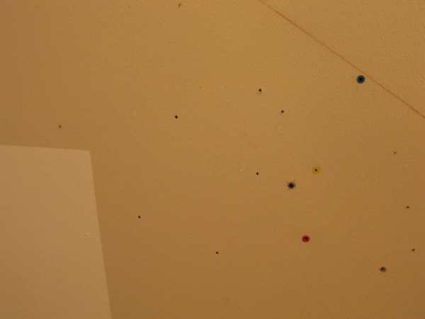 Si je crois en quelque chose, c’est bien l’enchantement; en particulier celui que nous procure la relation avec le Naturel. En l’absence de cette Nature, l’art doit agir comme substitut. Drywall planetarium : Où est rendu l’art? est une façon de retrouver l’enchanteur et le mystérieux dans la matière du quotidien, même lorsque ce qu’on appelle l’art (aussi encadré et canonisé soit-il) nous est refusé.