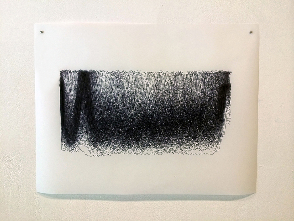 Francesca Penserini, Mailles/dessins sans fin, 2014, graphite sur papier Stonehenge, 11 cm x 19 cm, 90 cm x 19 cm.