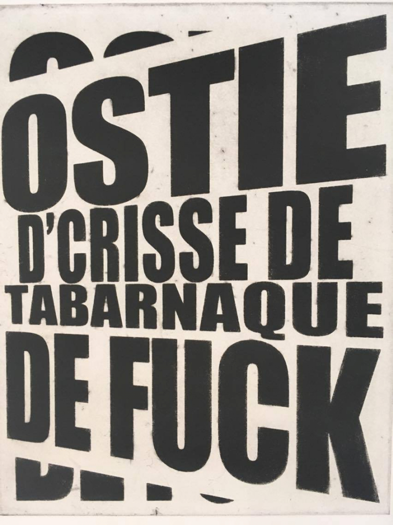 Sylvain Bouthillette, Ostie d’crisse de tabarnaque de fuck, 2016, eau forte, épreuve d’artiste sur tirage de 12.