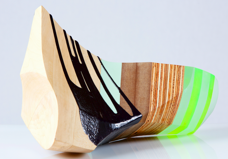 Marie-Fauve Bélanger, Hybride 01, 2017, MDF, plexiglass, tilleul, contreplaqué, corafoam, résine, 23 cm x 46 cm x 33 cm.