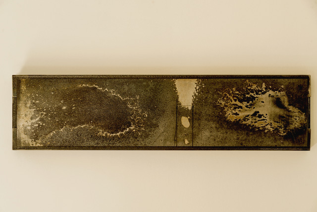 Yves Louis-Seize, Jaillissement 5, 2017, acide sur acier doux, 17 cm x 68 cm x 6 cm.