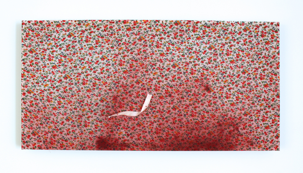 Marie-France Cournoyer, DEHORS, 2017, acrylique, fil et ruban sur tissu, 30 cm x 60 cm.