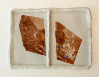 Catherine Sylvain, Porter la trace 3, 2017, porcelaine, 27 cm x 18 cm x 0,5 cm.