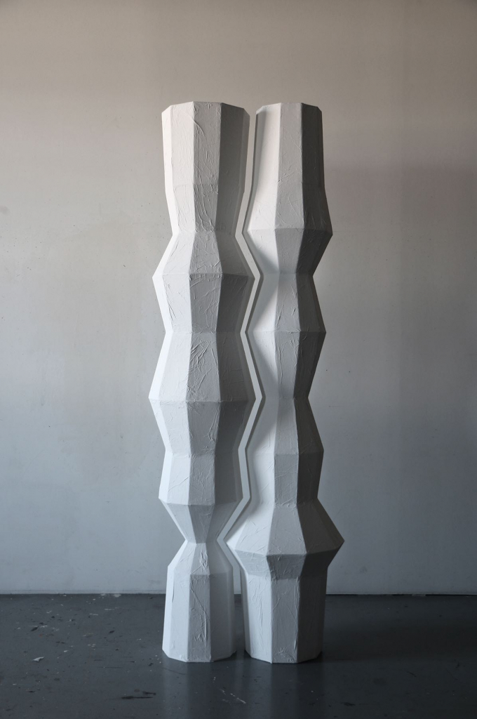 Guillaume Brisson-Darveau, Les Colonnes complémentaires, 2017, carton, papier de soie, peinture latex, 220 cm x 15 cm x 40 cm.