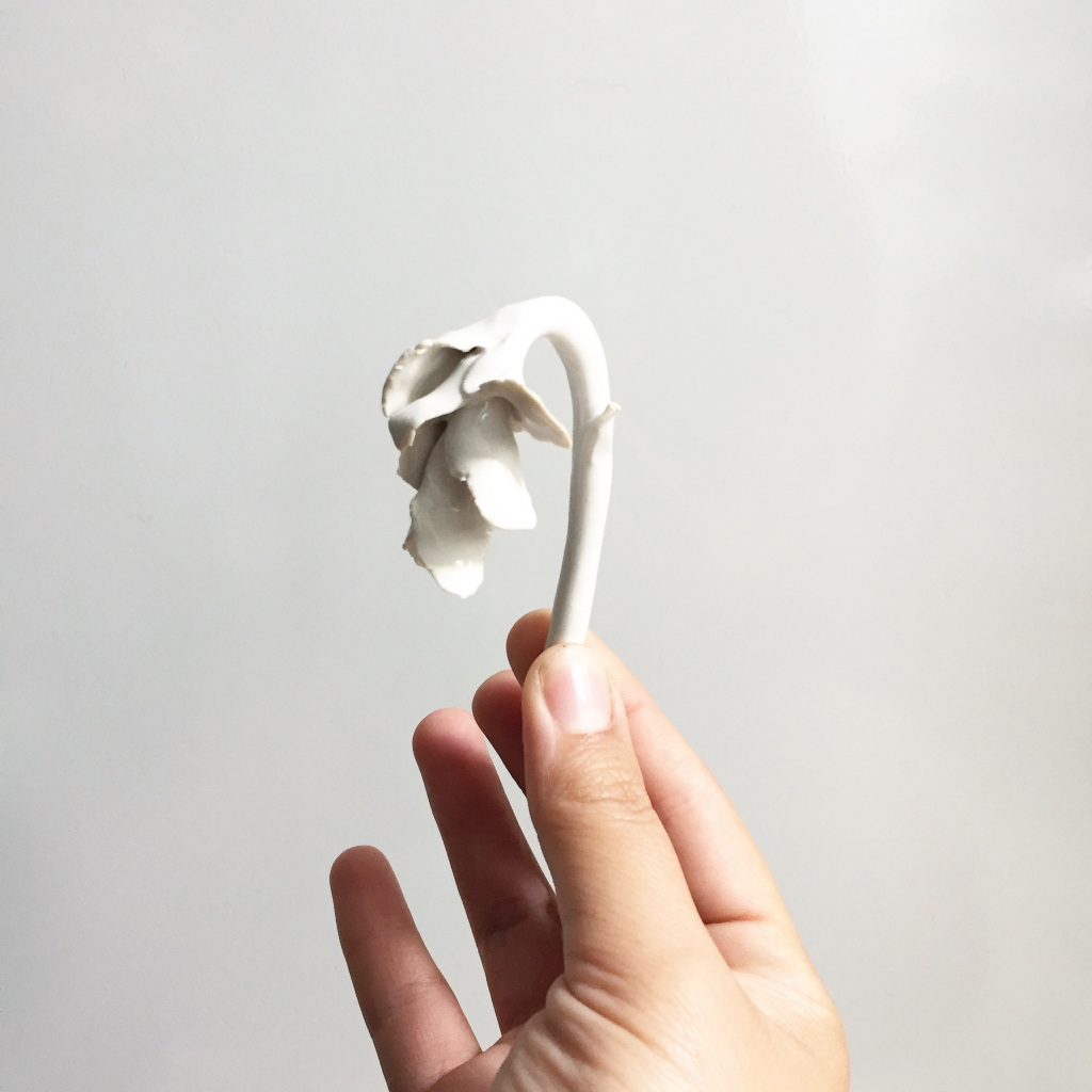 Vicky Sabourin, Ghost (Monotropa Uniflora), 2017, porcelaine émaillée, 2 cm x 5,5 cm x 7,5 cm.