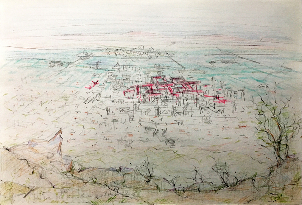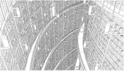 Stéphane Gilot, Montréal délire (la ville surterraine), 2012, mine de plomb et crayon de couleur sur papier, 20.2 cm X 29.8 cm.