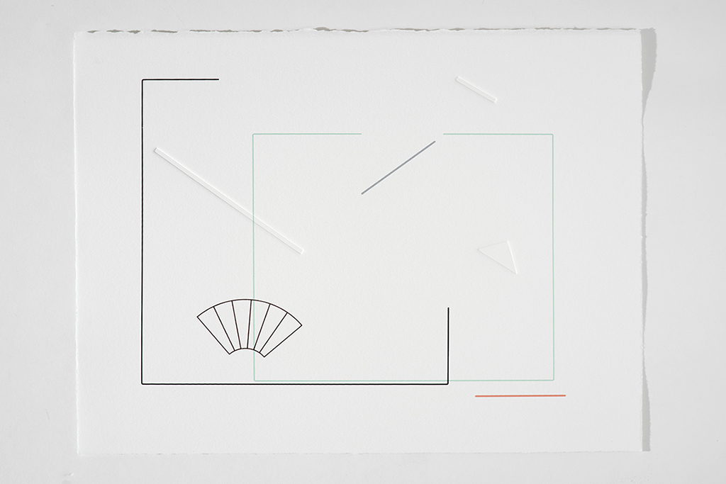 Jennifer Lupien, Immatériel (Objet 3), 2016, sérigraphie et embossage sur papier (Monotype), 28 cm x 38 cm.
