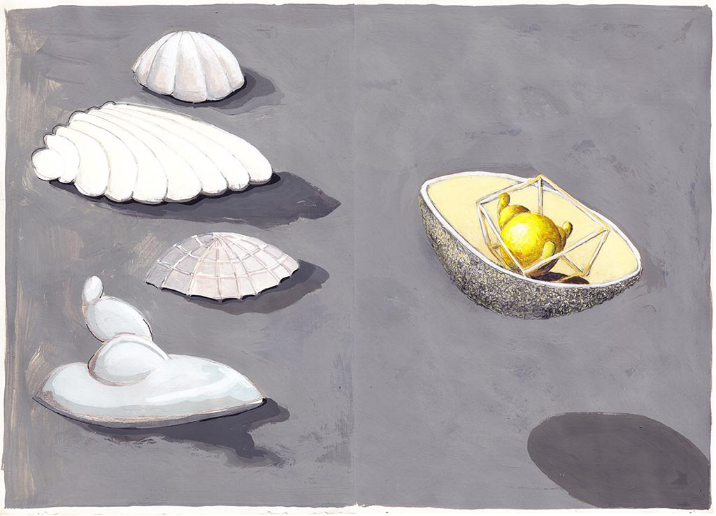 Stephen Schofield, Dessin au fond gris no.3, 2011, gouache sur papier, 23 cm x 30 cm.