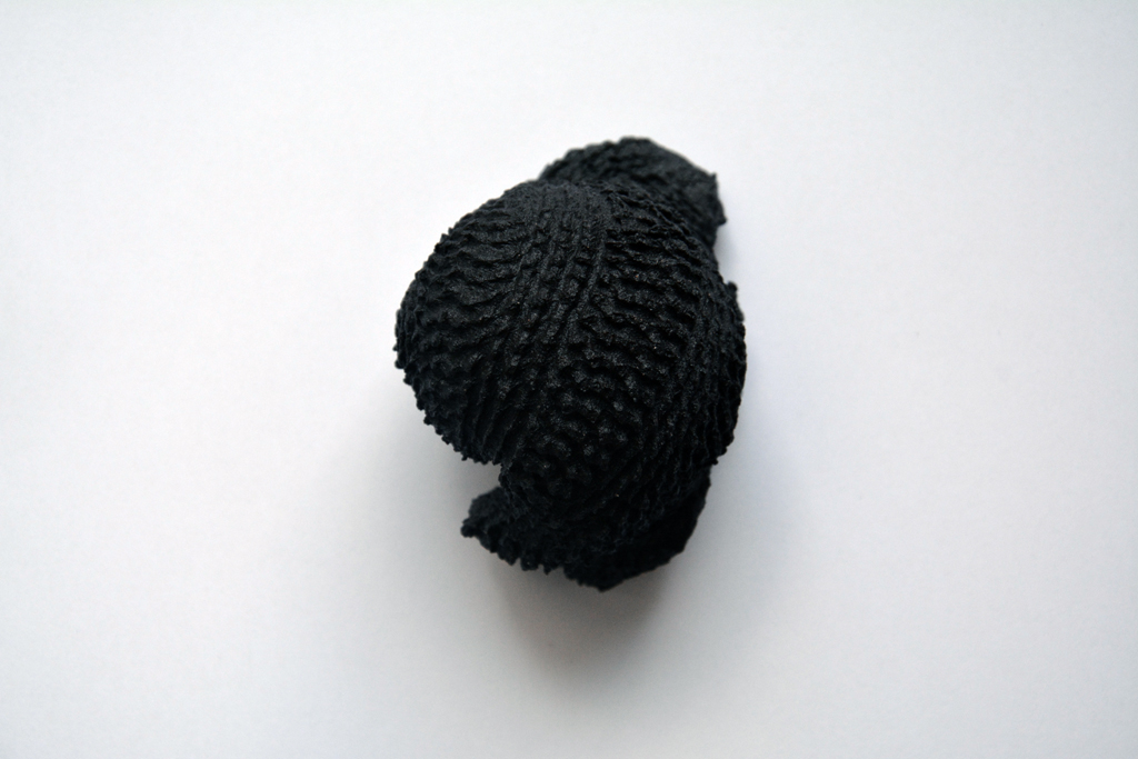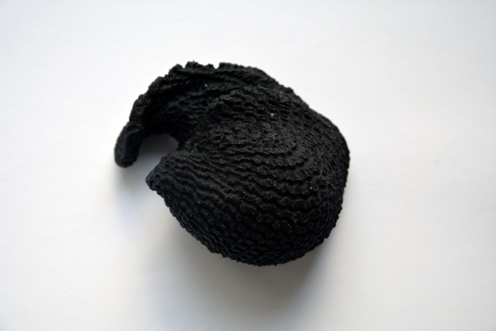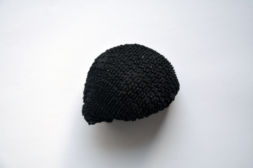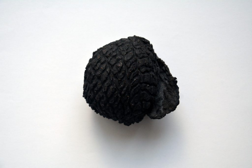 Amélie Brisson-Darveau, Noir 13, 2016-2017, grès, oxyde de manganèse, huile, 7 cm x 5,5 cm x 7 cm.