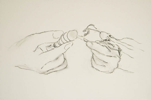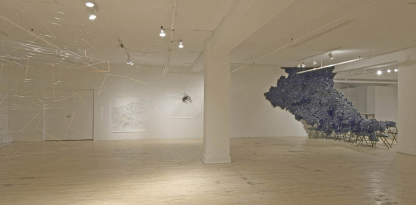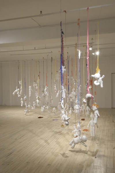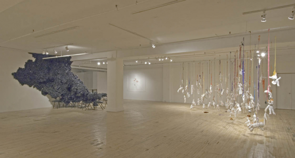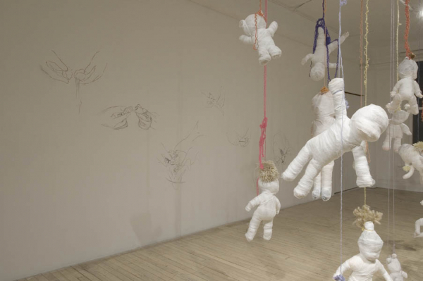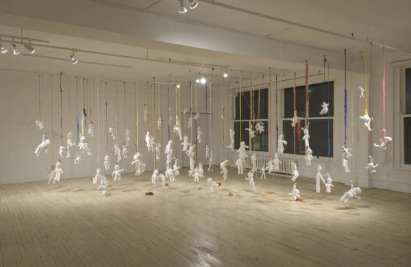 Pour l’occasion, Catherine Bolduc, Josée Dubeau, Marie-Josée Laframboise, Manuela Lalic et Janet Logan font, ensemble, du surplace. Besogneuses araignées, elles accumulent et entrelacent objets et sens, en investissant d’une manière dynamique l’espace de la galerie Circa. Faire du surplace offre une perspective du travail in situ où le Faire prend le dessus sur le théorique et le Surplace rappelle à la réalité des limites concrètes du temps et de l’espace. Chacune penchée sur son ouvrage, elles font ensemble du surplace, juxtaposant et confrontant leurs travaux distincts d’assemblage, en transformant peu à peu la réalité des objets manipulés et laissant émerger le sens à travers le faire, ici et maintenant.