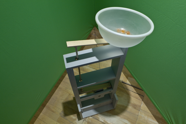 Depuis quelques années Paméla Landry développe des machines à investissement d’affects. À partir d’un répertoire de stéréotypies issu de l’étude du comportement de personnes vulnérables, autistes ou des obsessifs-compulsifs, elle fabrique des dispositifs qui en empruntent des caractéristiques. Que ce soit par des mouvements répétés ou une gestuelle singulière, la vue de ces ilots nous interpelle dans un effet calmant et apaisant. Ainsi transfère-t-elle à ses machines la capacité de soignante et d’aidante qu’on associe au caractère féminin. Paméla Landry vit et travaille à Montréal. Son travail a été présenté dans des expositions collectives et individuelles au Canada et en Europe. Elle vient de terminer la résidence du Conseil des arts du Canada, à Londres.