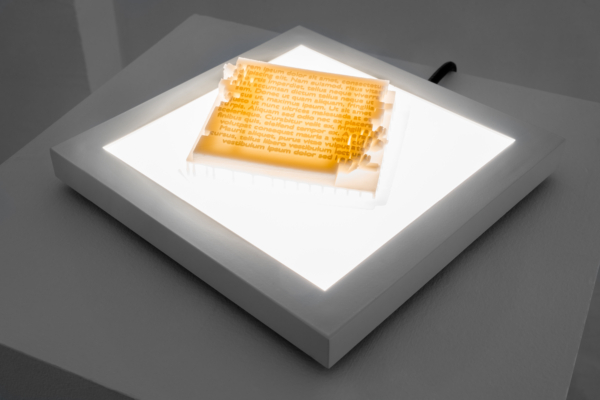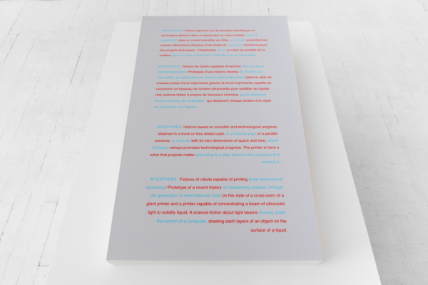 INTERTYPES porte un regard sur l’empreinte culturelle de l’impression 3D dans l’évolution des techniques d’imprimerie, investiguant ainsi leur continuité historique et culturelle. Il s’agit plus spécifiquement d’un corpus d’œuvres qui aborde la question des développements technologiques selon une perspective de remédiation, c’est-à-dire par la manière dont les outils et dispositifs antérieurs influencent ceux actuellement en émergence et ce, sous l’angle de l’archéologie des médias, soit de la lisibilité d’un fil conducteur à travers nos artéfacts contemporains. Comment par exemple des « accidents » historiques se retrouvent-ils encodés et portés jusqu’à nos cultures numériques actuelles? S’y faufile aussi en filigrane une réflexion sur l’image imprimée et en mouvement dans l’histoire, de même que sur sa valeur de vérité et sa capacité à véhiculer des contenus au-delà de ses contours visibles. Constituée d’impressions 2D et 3D et d’animations de synthèse comme contrepoint narratif, l’exposition se décline comme un ensemble hybride et non linéaire de représentations, d’interprétations et de projections.