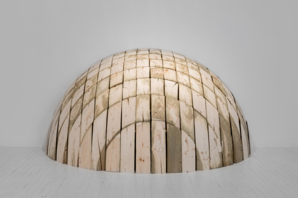 Dans ses œuvres récentes, c’est la sphère qui se prête le plus souvent à ses jongleries d’atelier. Qu’il s’agisse de dômes, de coupoles ou d’autres objets ronds, ses ouvrages consistent à voir ce qu’il en est de la forme lorsqu’elle se déploie dans une matière ou une échelle plutôt qu’une autre. En ressortent des systèmes constructifs, adaptés ou non, qui relèvent moins du calcul que de l’expérimentation et du jeu. Un combat structurel se dégage alors des éléments matériels et conceptuels mis ensemble, pour les mettre à l’épreuve comme pour en confirmer la solidité.