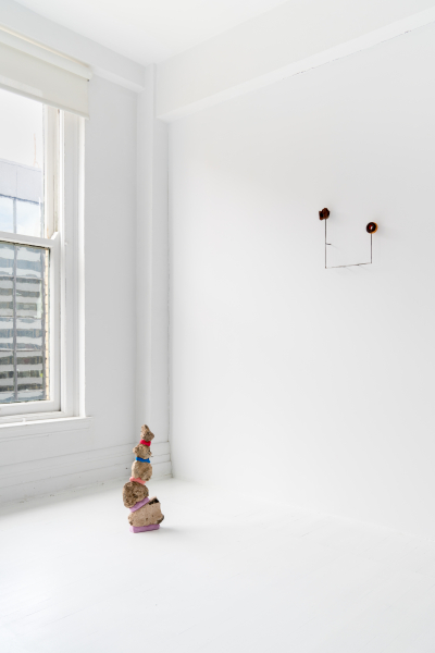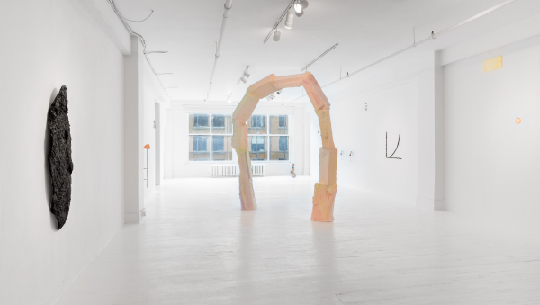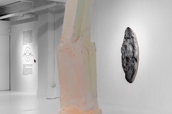 Par ce jeu de mutation qui perturbe l’intégrité physique d’une forme, l’artiste amorce une réflexion sur l’évolution d’un objet dans l’espace et le temps, mais aussi sur la portée du geste qui le façonne. Les interventions laissées à même les murs de l’exposition sont autant de clins d’œil à l’art pariétal, premières traces délibérées et pérennes de notre espèce, qu’au dispositif de diffusion qu’est la galerie. Dans les deux cas, le contexte devient le médium où l’on laisse une trace distincte et décisive qui modifie l’environnement et marque la temporalité. L’œuvre Exponential Clay est une boutade à ce geste qui a érigé la longue courbe évolutive des manifestations humaines. Ce diagramme sculpté à tâtons décrit une courbe de croissance exponentielle, composée d’abord d’une montée lente et régulière qui culmine vers une verticalité transformatrice. KNEE of CURVE accuse cet instant elliptique et imprévisible qu’on ne peut qu’anticiper et qui se situe au « creux de la courbe ». C’est l’évocation d’un moment radical au cœur de la présente exposition, la suggestion d’un point de singularité. C’est la quête d’un seuil de basculement qui modifie radicalement l’appréciation d’un objet, ce moment de prégnance liminale qui augure une ontologie nouvelle.