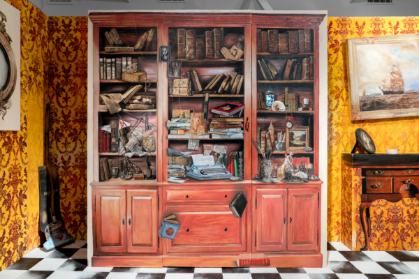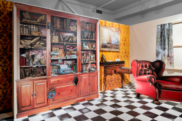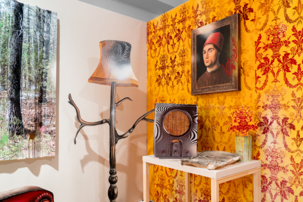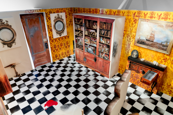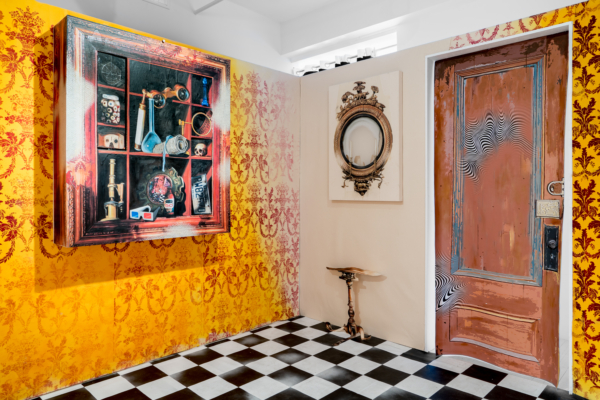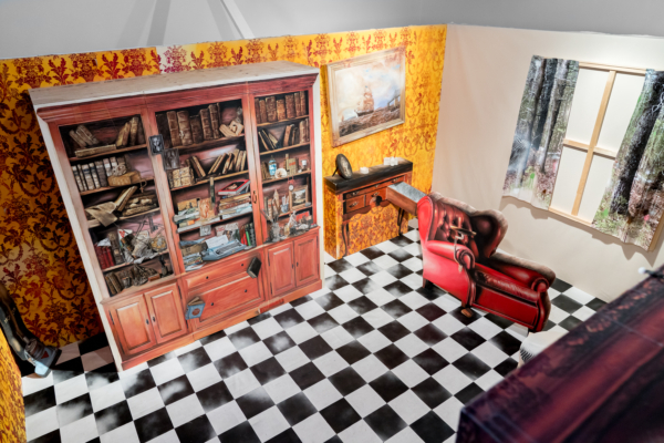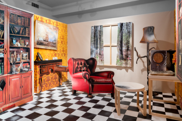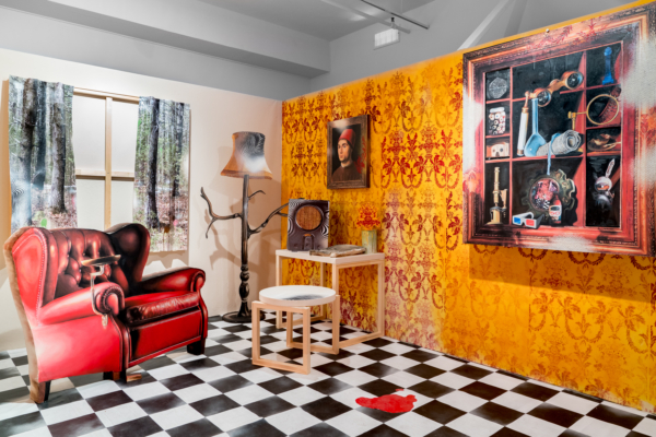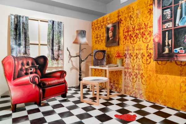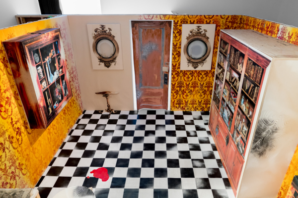 Sous le vernis est une exposition-installation qu’on pourrait presque qualifier d’exposition-évènement, tant la proposition immersive d’Éric Lamontagne est singulière sur la scène de l’art actuel. Fruit d’un important travail échelonné sur de nombreuses années, l’œuvre met à profit la maestria technique du peintre et un ludisme bien assumé pour faire advenir un lieu particulier. Sorte de trompe-l’œil de grande envergure, les spectateurs sont appelés à y entrer pour y suivre le fil d’un récit dont les ramifications s’étendent même au-delà de l’espace d’exposition.