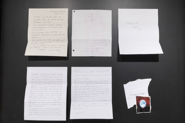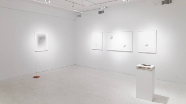 Chez Yannick De Serre, l’objet de la rupture est in presencia. Au cœur de l’exposition Tergiverser vers le vide se trouve un sécateur, outil horticole destiné aux opérations de taille. C’est d’ailleurs cet objet qui a donné l’impulsion créatrice au projet. Il y a quelques années, l’artiste a demandé à son entourage plus ou moins proche de lui faire parvenir des lettres, en répondant à la question suivante : « Que laisseriez-vous sur la table pour expliquer votre départ? » Bien sûr plusieurs lettres lui sont parvenues; certaines d’entre elles tapissent aujourd’hui les murs de la galerie. Plus qu’une tentative d’explication, ces objets dévoilent parfois un état d’âme, souvent un état d’être duquel les signataires des lettres doivent et veulent souvent se délier. D’où la rupture nécessaire pour y parvenir! Face à ces lettres, le sécateur trône sur un empilement de feuilles, témoins d’œuvres passées, sciemment découpées par l’artiste. Cette main qui guide la taille, n’est-elle pas elle aussi celle qui métaphoriquement accompagne ou empêche le départ, retient l’autre ou le laisse aller? Il se dégage de la série de bouquets de fleurs réalisés en gaufrage et graphite, et exposés sur les murs de la galerie, face aux lettres, une déclinaison sentie d’émotions prises en charge par la gestualité et le positionnement de la main tenant le bouquet. Ici une main pince avec délicatesse le bouquet laissant transparaitre la fragilité du lien, là elle laisse aller le lien. Ailleurs, elle empoigne avec fermeté, voire colère, la gerbe empêchant l’échappée. Finalement, ouverte et tendue vers le haut, la même main opère une fusion avec le bouquet, signe probable d’un lâcher-prise. Dans cette cartographie d’émotions, Yannick De Serre place la rupture comme un levier engageant sans cesse le poids de la présence et celui de l’absence dans une lutte intérieure : rester et se perdre, partir et re-vivre. Que de tergiversations avant et dans l’acte! Si la rupture semble être réfléchie dans la tête de celui qui la cause, elle provoque l’incompréhension chez celui qui la subit. Alors viennent les questions et le doute; puis l’acte se nimbe de mystère.