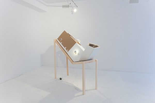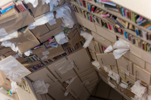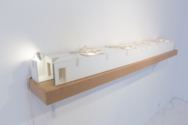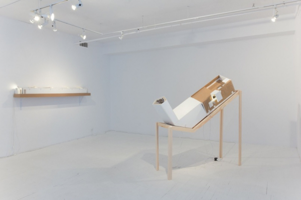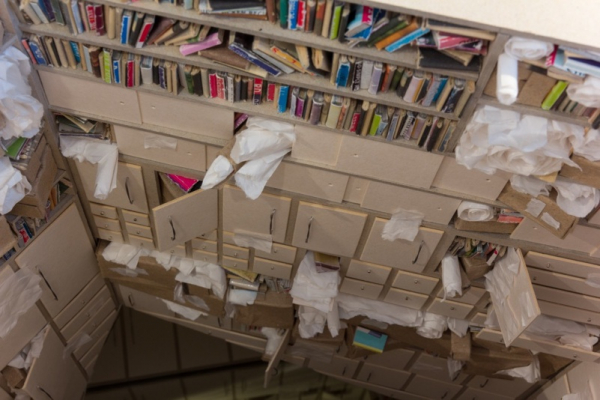Erika Dueck réalise des agencements intérieurs miniatures qui explorent la façon dont nous percevons et interprétons la réalité. Dans ses miniatures, les intérieurs confondent l’espace, perçant quelquefois les structures physiques qui les entourent. Elles deviennent des passages qui s’étendent vers des endroits éloignés ou quicirculent à travers des boucles sans fin. L’artiste propose souvent des mondes isolés, retirés de leur environnement, qui existent indépendamment des structures physiques les entourant. C’est ainsi que l’artiste inscrit son projet dans l’esprit du roman Le meilleur des mondes puisqu’elle propose une réalité détachée du monde naturel, de l’histoire humaine et de l’intimité avec les autres. Les deux mondes sont alors des structures sans fondation qui existent en dehors du réel